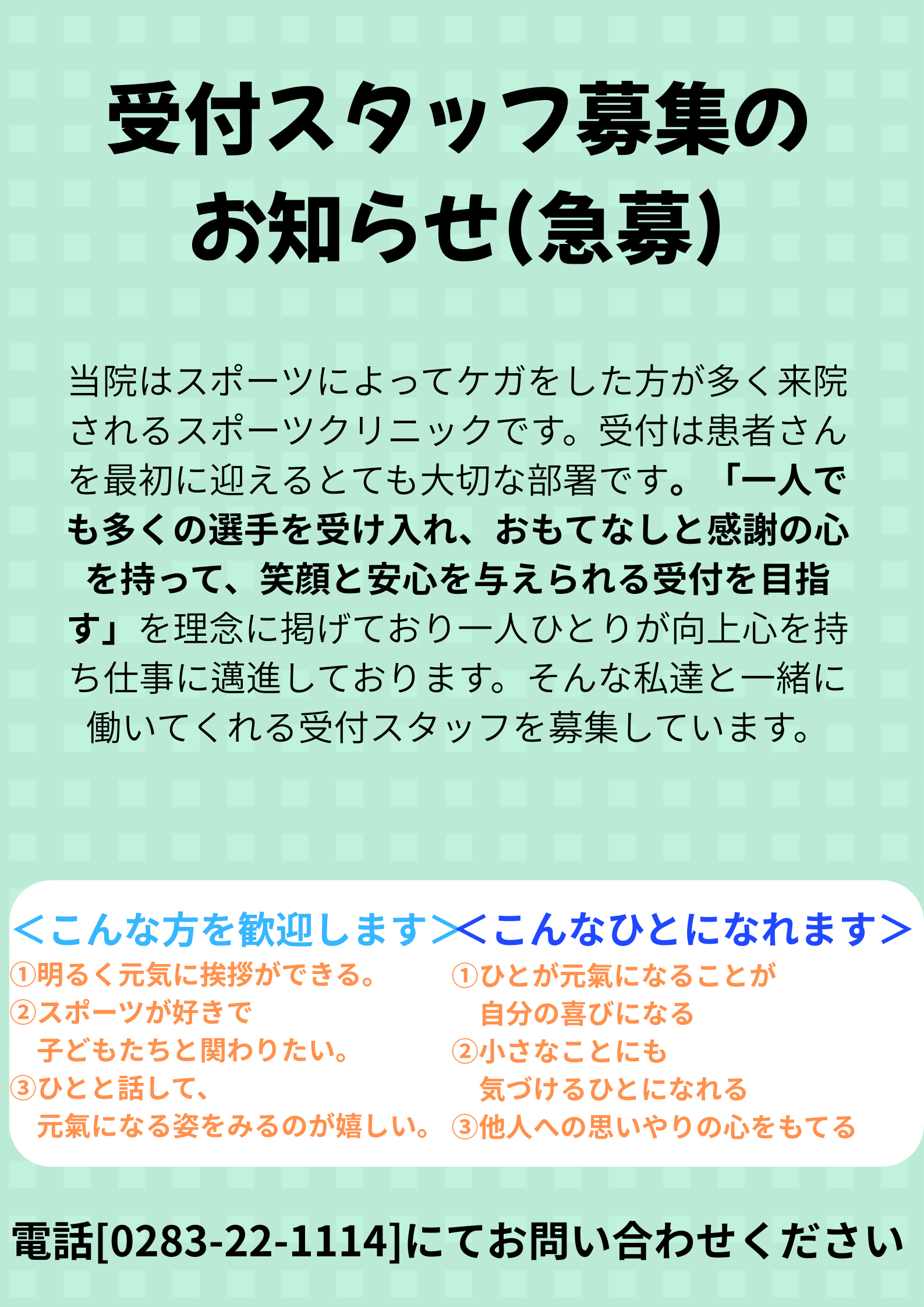 来院の際は一度お電話にてお問い合わせください。
